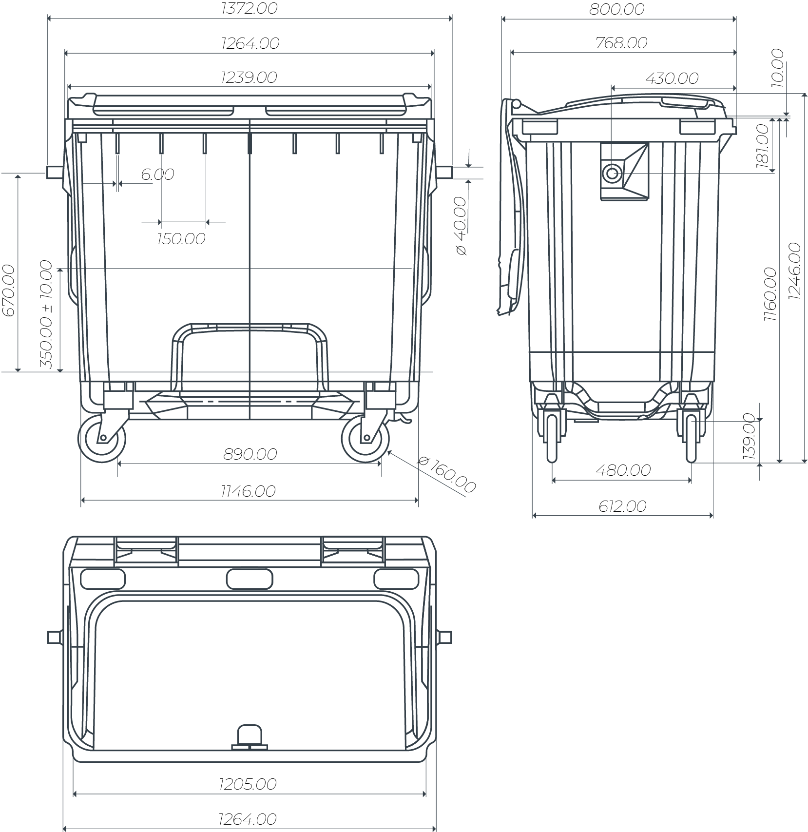 Contentor equipado com sistema de insonorização na tampa.