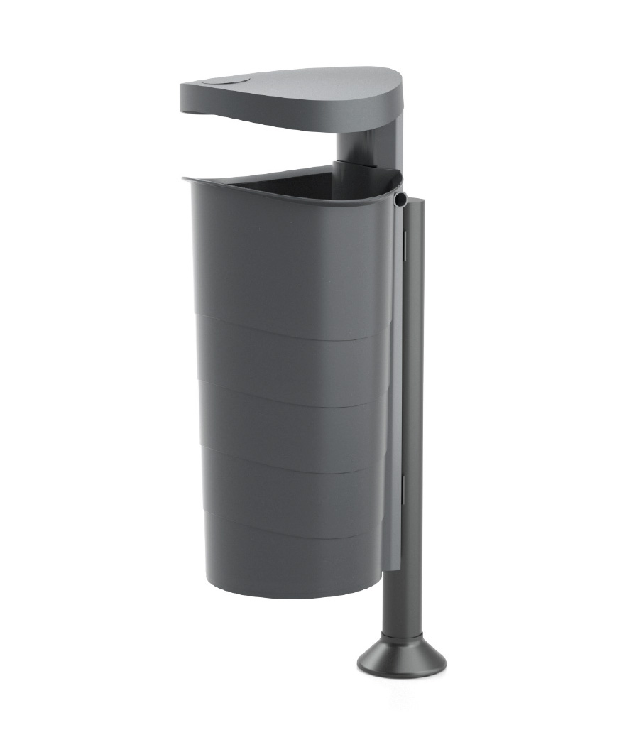Fabricado em plástico técnico que serve para fixar a papeleira num poste fixo.