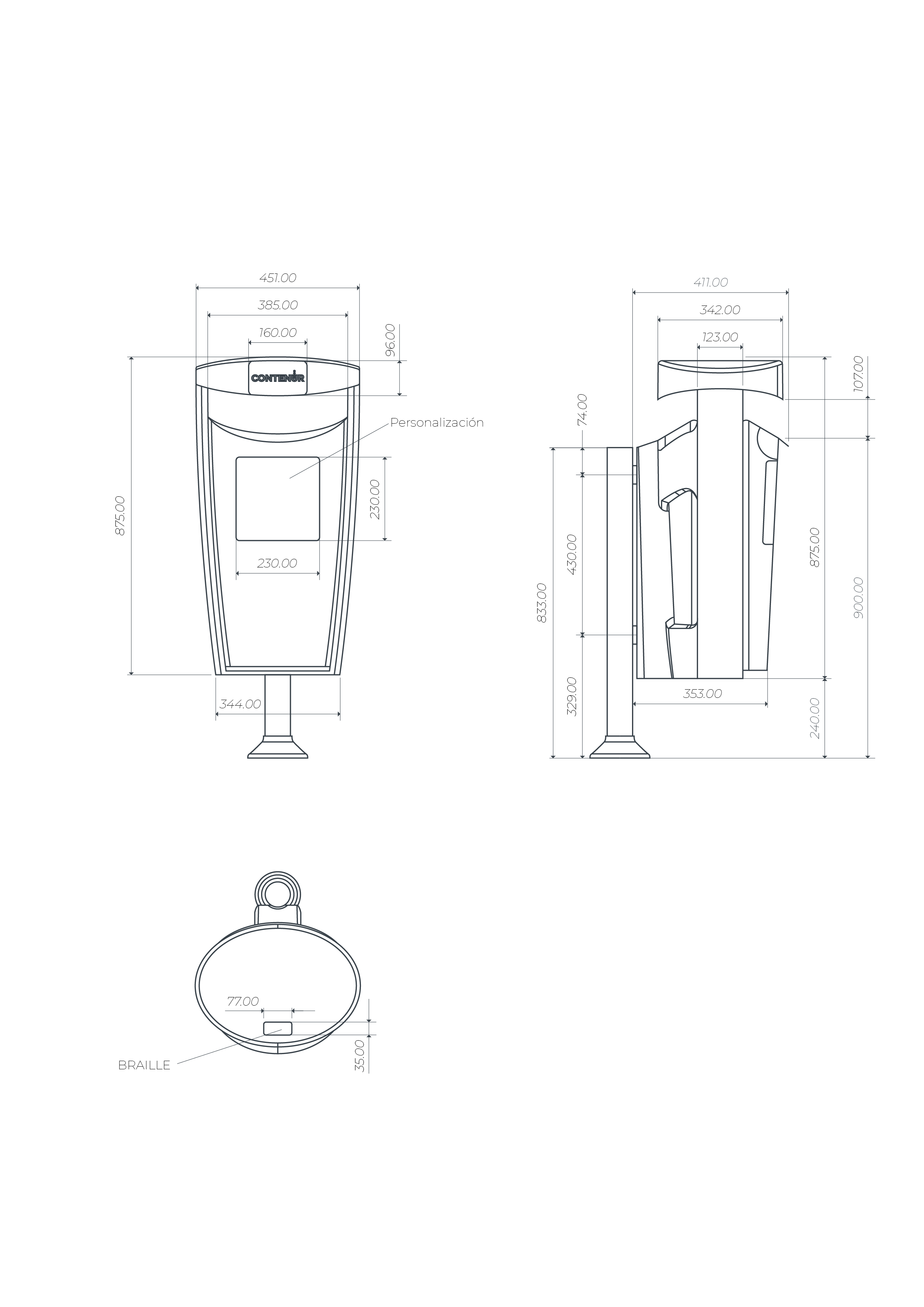A pedido, existe a possibilidade de fornecer a papeleira ÓMEGA 50 L sem cobertura superior.